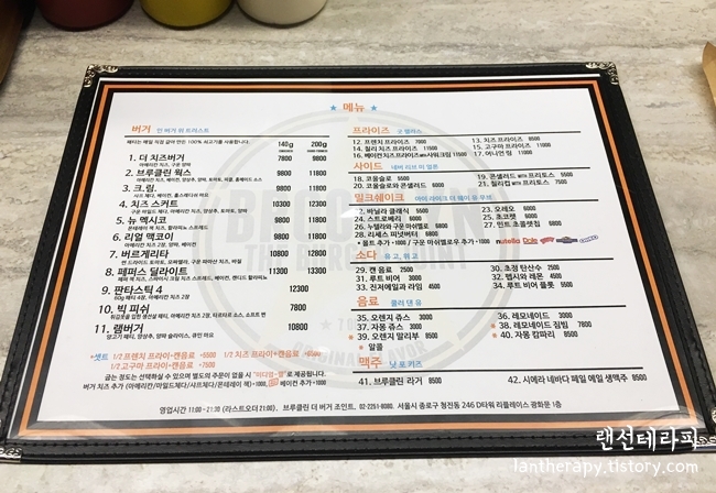 : 브루클린더버거조인트 메뉴판 :